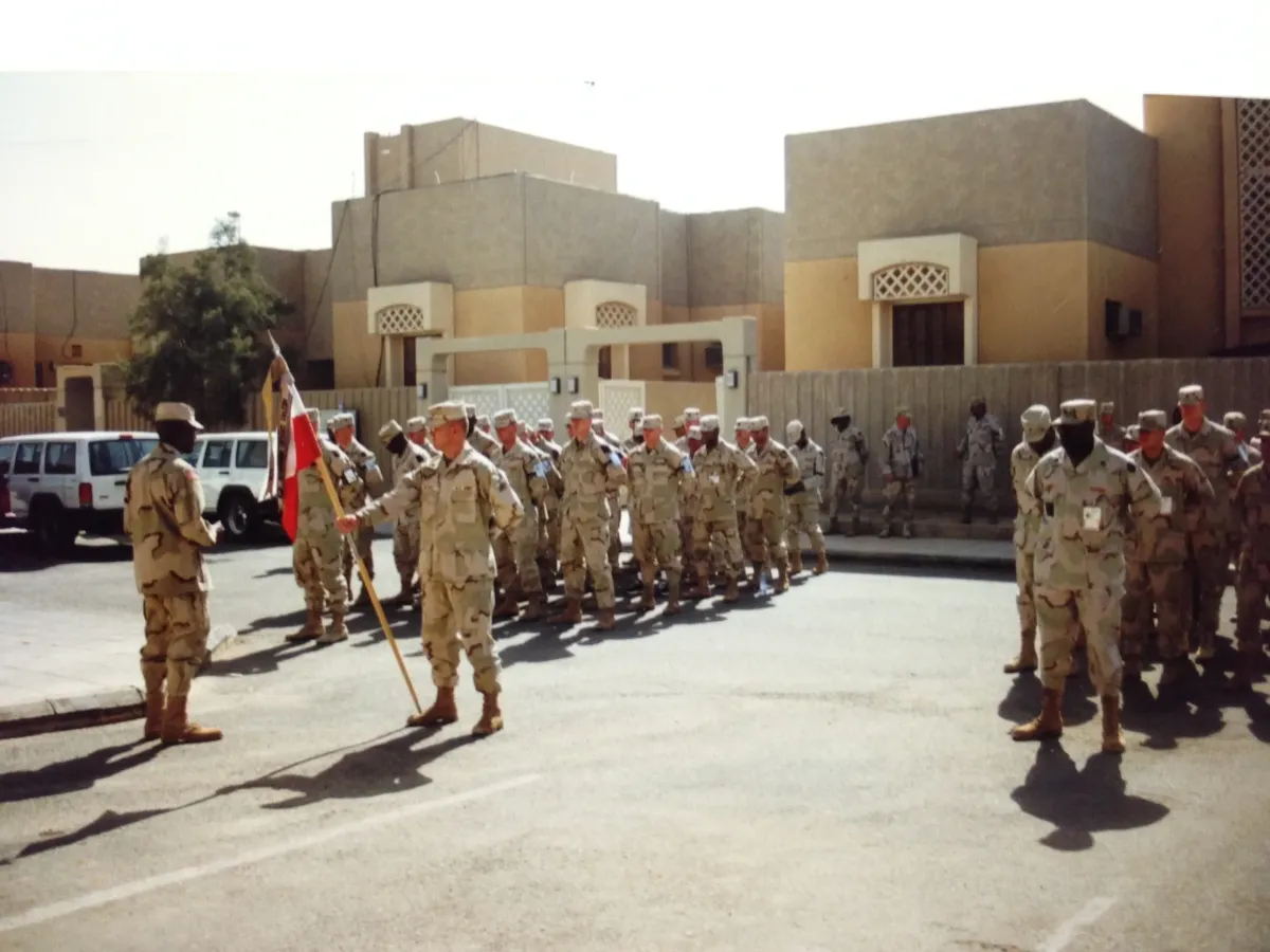 Delivering presentation at homegoing ceremony of legionnaire.